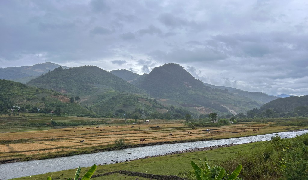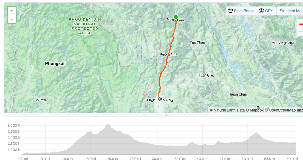 There were two categorized climbs on this stage and a bunch of short-sharpies. We said goodbye to all the other guests at the hotel (which meant nobody) and after an easy 15 km of flat riding out of Muong Lay, we started to climb.