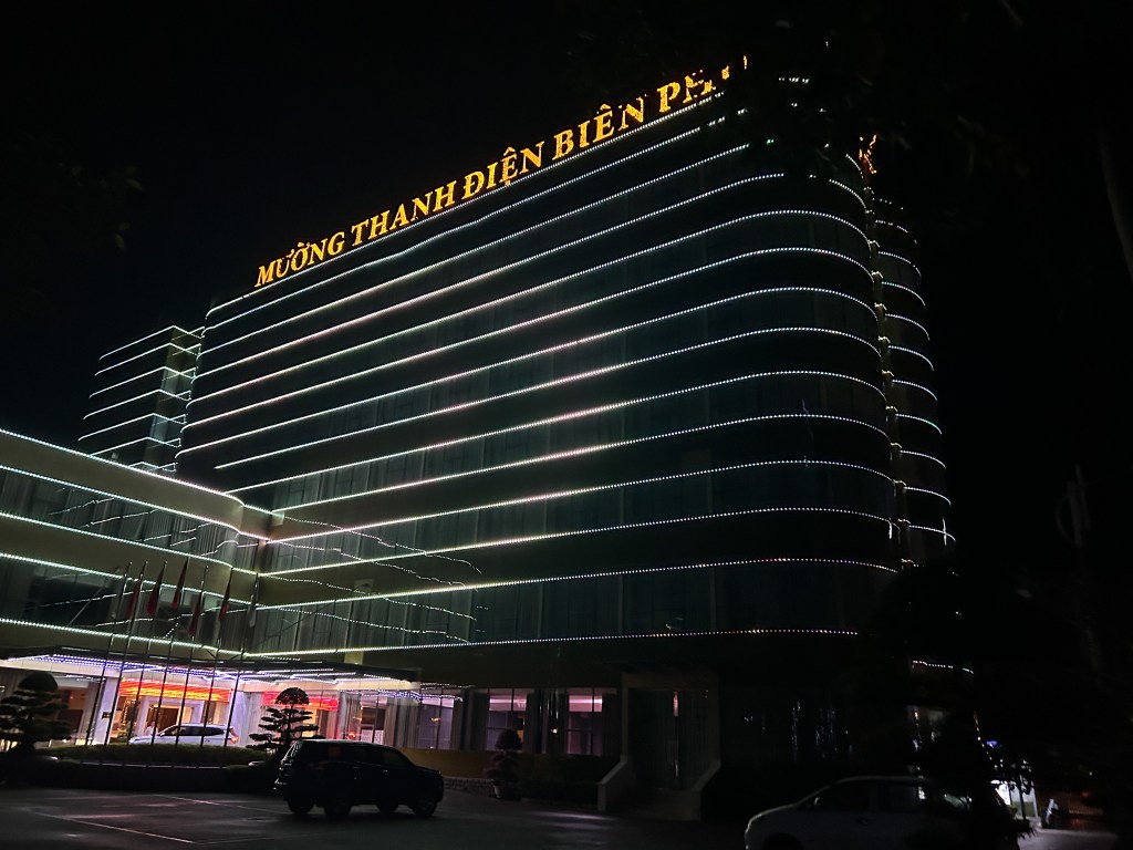 The rest of the ride was an easy descent into Dien Bien Phu. It was a Saturday and there was a parade of bikes up the hill, some of them pretty high-end. Clearly, Dien Bien Phu has a big cycling community of hammerheads. Outside of navigating a bit of traffic in the town we arrived at the hotel all in one piece. This hotel was not empty. It was pretty busy with tour buses. It looked lovely and had a gorgeous pool.