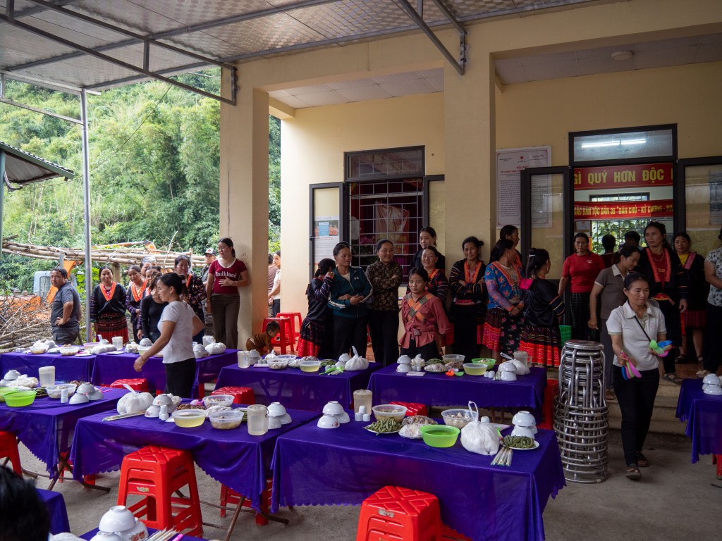 We were going through one small little town and Thao pulled over and excitedly said “It’s a wedding, go take some pictures!” There were probably 30 or 40 people in a covered area that were having some kind of big celebration. I grabbed the camera and went inside and started taking pictures of everyone. There was one woman in a beautiful dress of traditional clothes that was happy to have her picture taken.
