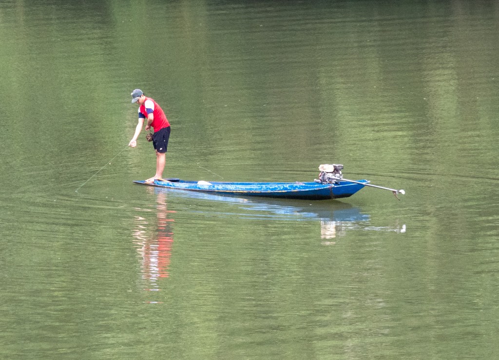 After wandering around the village for a while, we headed down to a restaurant that had a beautiful deck overlooking the river. There was a European woman out on one of the boats learning how to fish with a net. I guess, fishing and kayaking are pretty popular things for tourists to do on the river.