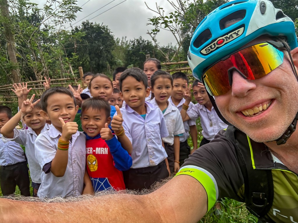 Luckily, the kids of Laos brought me out of my funk. Like in Vietnam, when you would ride by, they would run out and start waving and shouting “Sabaidee! Sabaidee!” That always put a smile on my face. At one point, an entire school full of kids ran out and we stopped. They let me take a selfie with them; it was beyond cute.