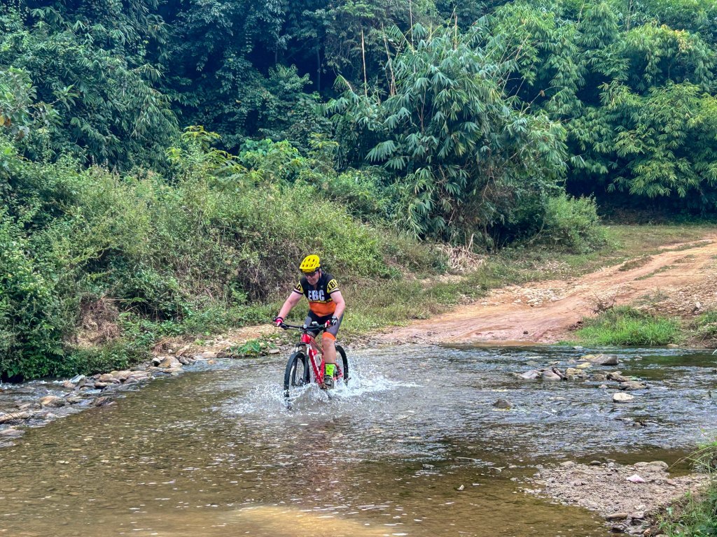 It was a surprisingly challenging ride on the dirt, especially with the gravel bike, which is not quite as well-equipped for rough terrain as a mountain bike. There were ruts, mud, scared cows, motorbikes, and a couple creek crossings. When we got to the pavement, I was kind of glad that we didn’t have to do 60 km of that kind of dirt—that would have been a long day.