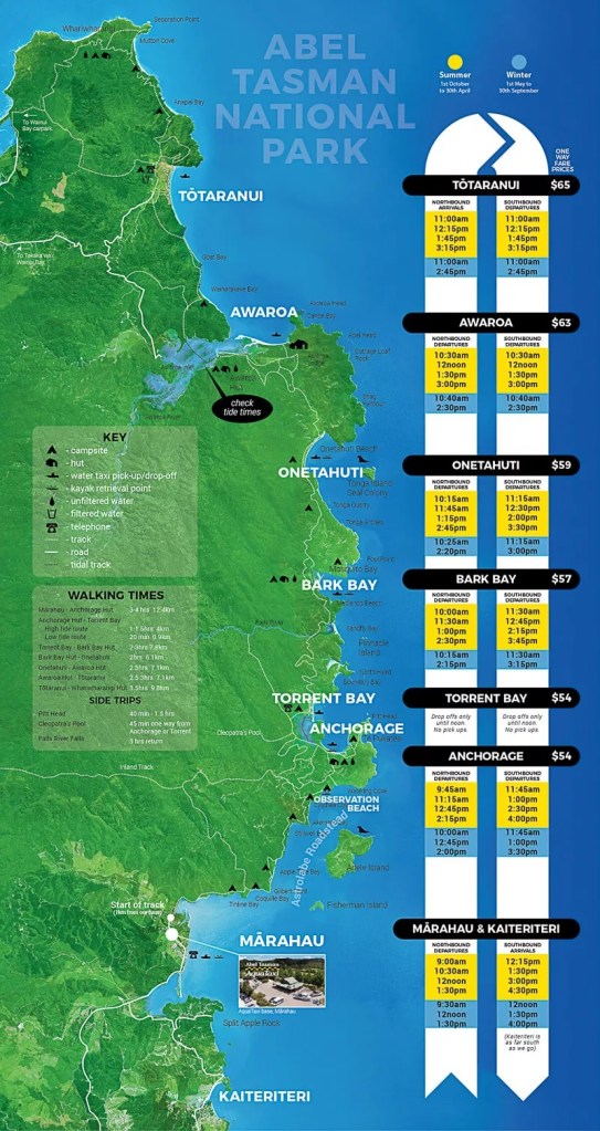 Marahau is the hub for Abel Tasman and has a large fleet of water taxis ready to whisk you off to various parts of the park. There are a couple of providers that you can choose from and I don’t think it overly matters which one you chose: