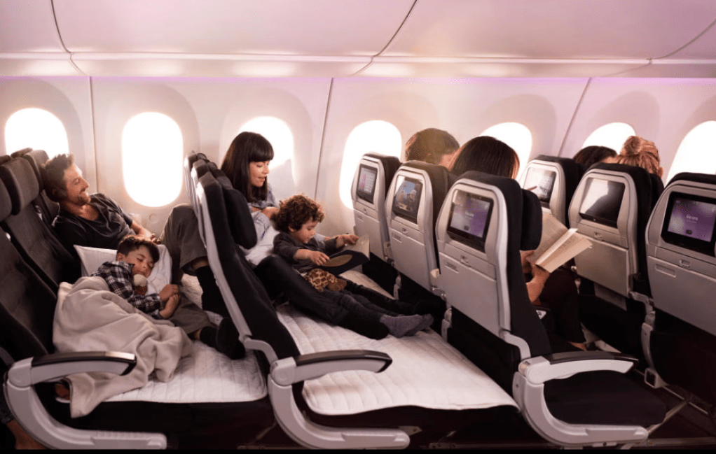 Pro Tip: If you are made of money and it is burning a hole in your pocket, then for god’s sake buy B-class tickets and don’t think about it. If you are on a more austere budget and/or a total cheapskate like me, and the thought of hanging out in economy class with 200 of your closest friends for 13 hrs without sleep is more than you can bear, then we have the answer for you. Air New Zealand has a thing called the “Skycouch” which is basically a row of economy seats that has been fitted with foot rests the raise up and make a “couch.” The additional cost is about $1300 one way. It is about what premium economy costs, but infinitely better.